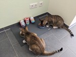The photo shows Pandy and Tommy after lunch. A midday nap is a must :-)
